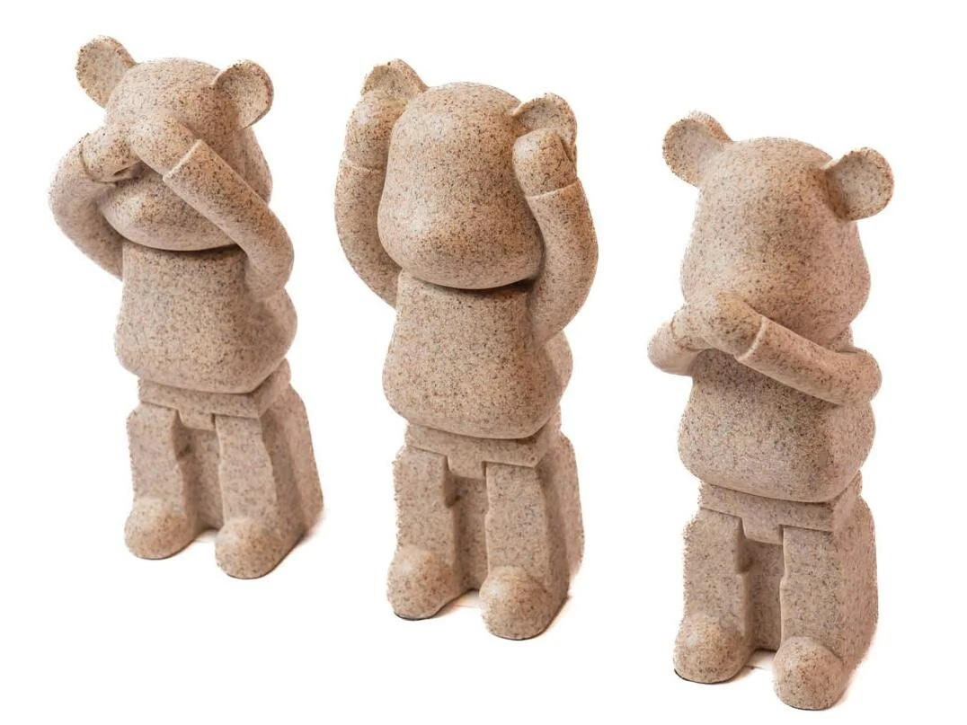 Este trio de esculturas em formato de ursinhos representa a filosofia dos “Três Sábios”: não ver, não ouvir e não falar. Com acabamento em resina de tom bege escuro, cada peça transmite uma mensagem simbólica de sabedoria e introspecção, adicionando charme e significado à decoração.