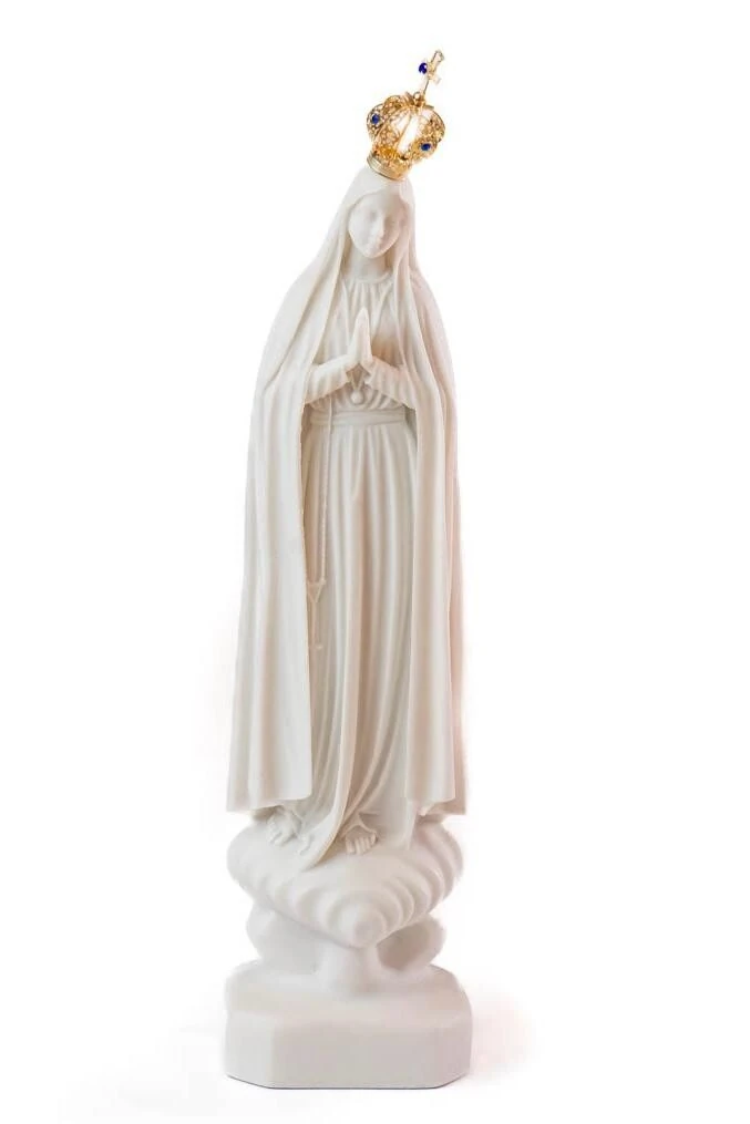 A imagem de Nossa Senhora de Fátima é um símbolo de fé, paz e devoção. Com traços delicados e expressão serena, esta peça em pó de mármore é ideal para compor ambientes espirituais e transmitir uma atmosfera de acolhimento e proteção. Uma escultura que inspira momentos de reflexão e conexão com o sagrado.