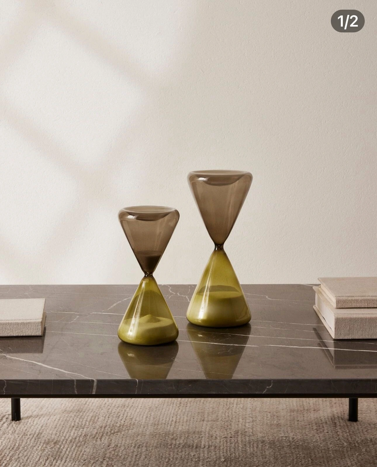 Com design contemporâneo e elegante, esta ampulheta decorativa em vidro combina dois tons de verde — um mais claro e outro mais escuro — criando um efeito visual encantador e moderno. Além de marcar a passagem do tempo, é uma peça que adiciona charme e sofisticação à decoração.