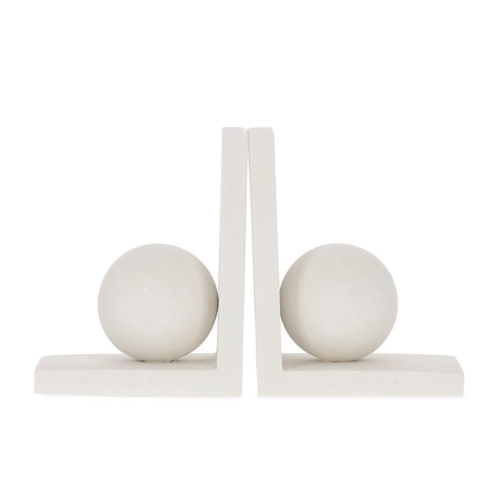 Aparador de livros em polirresina, com design elegante composto por uma base sólida e duas esferas decorativas. Uma peça sofisticada que combina funcionalidade e estética, ideal para organizar livros e decorar com estilo.