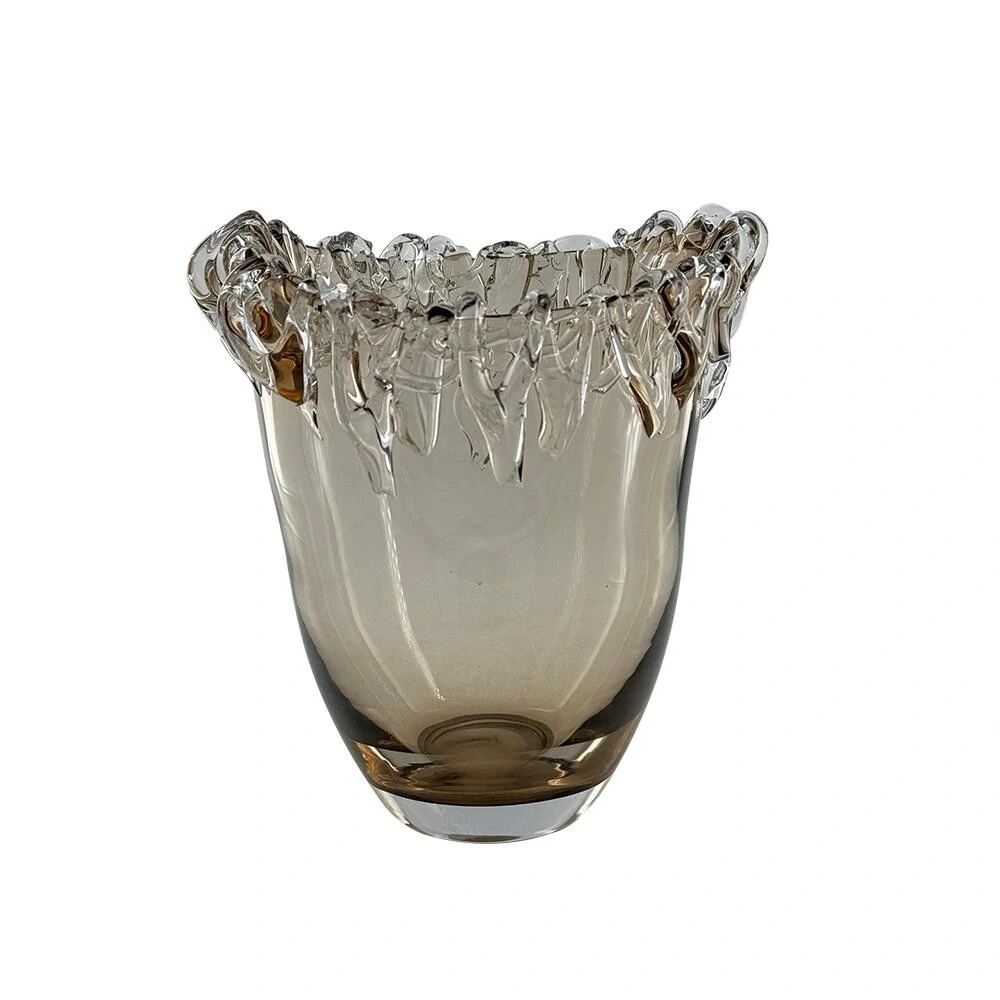 Vaso Decorativo em Vidro Murano Champanhe com Borda Orgânica
