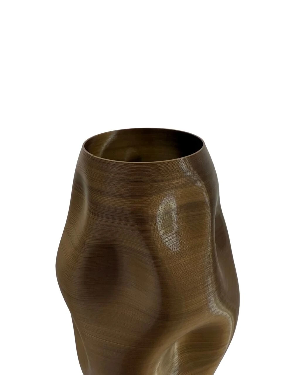 Assinado pela designer Anna Machado, o vaso Amasso Ouro Velho é produzido em impressão 3D com polímero PLA. Sua forma orgânica e acabamento que simula leves amassados conferem personalidade e sofisticação à peça. Leve, contemporâneo e funcional, ele compõe diferentes estilos de decoração com elegância.