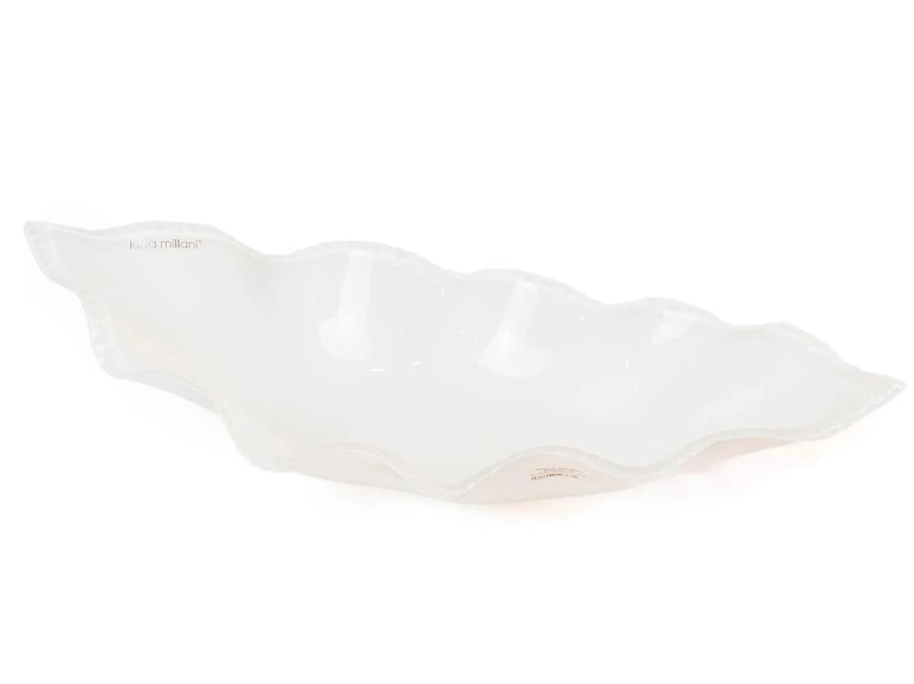 Centro de mesa em vidro branco da marca Luca Millani, que combina elegância e design autoral em uma peça marcante. Com formato orgânico e acabamento refinado, é ideal para composições sofisticadas e atemporais.