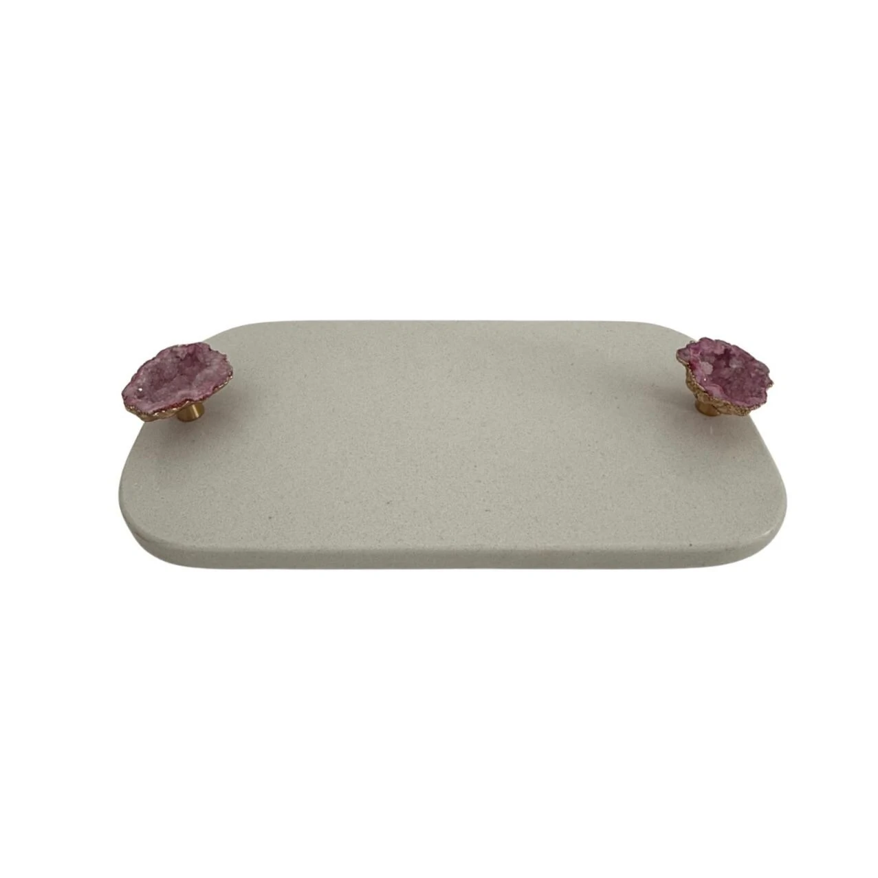 Uma peça refinada e exclusiva que combina o mármore branco com a exuberância das pedras naturais. As alças em ametista, com base metálica dourada, trazem sofisticação e um toque de cor, tornando essa bandeja um destaque na decoração.