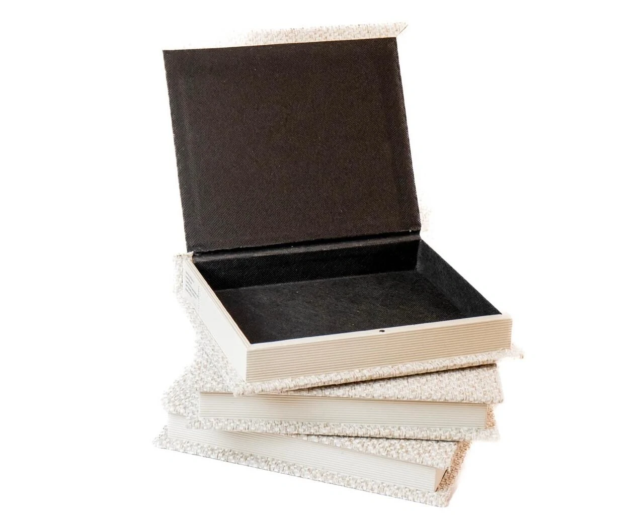 Caixa livro em madeira com acabamento em linho, na elegante combinação mescla de branco e bege. Um item funcional e decorativo, que alia organização e estilo. Ideal para guardar pequenos objetos com discrição, enquanto adiciona charme à composição.