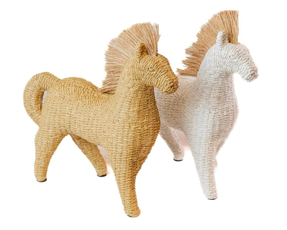 Escultura decorativa de cavalo em resina, com design que valoriza formas elegantes e traços suaves. Com uma característica infantil, essa peça transmite um ar de delicadeza e graça, tornando-se ideal para quartos de crianças. Disponível em duas versões de cor: branco e bege, ela traz sofisticação e um toque lúdico ao ambiente.