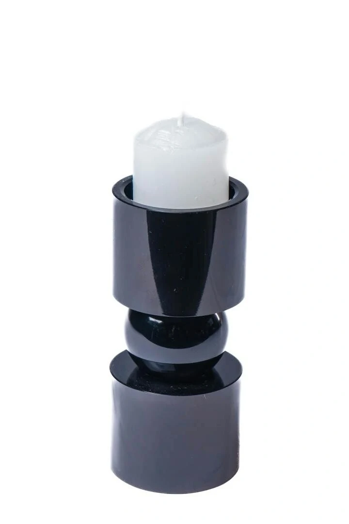 Castiçal decorativo em cristal na cor preta, que une sofisticação e modernidade em uma peça de design elegante e atemporal. Ideal para composições que valorizam contrastes e detalhes refinados. Disponível em dois tamanhos.