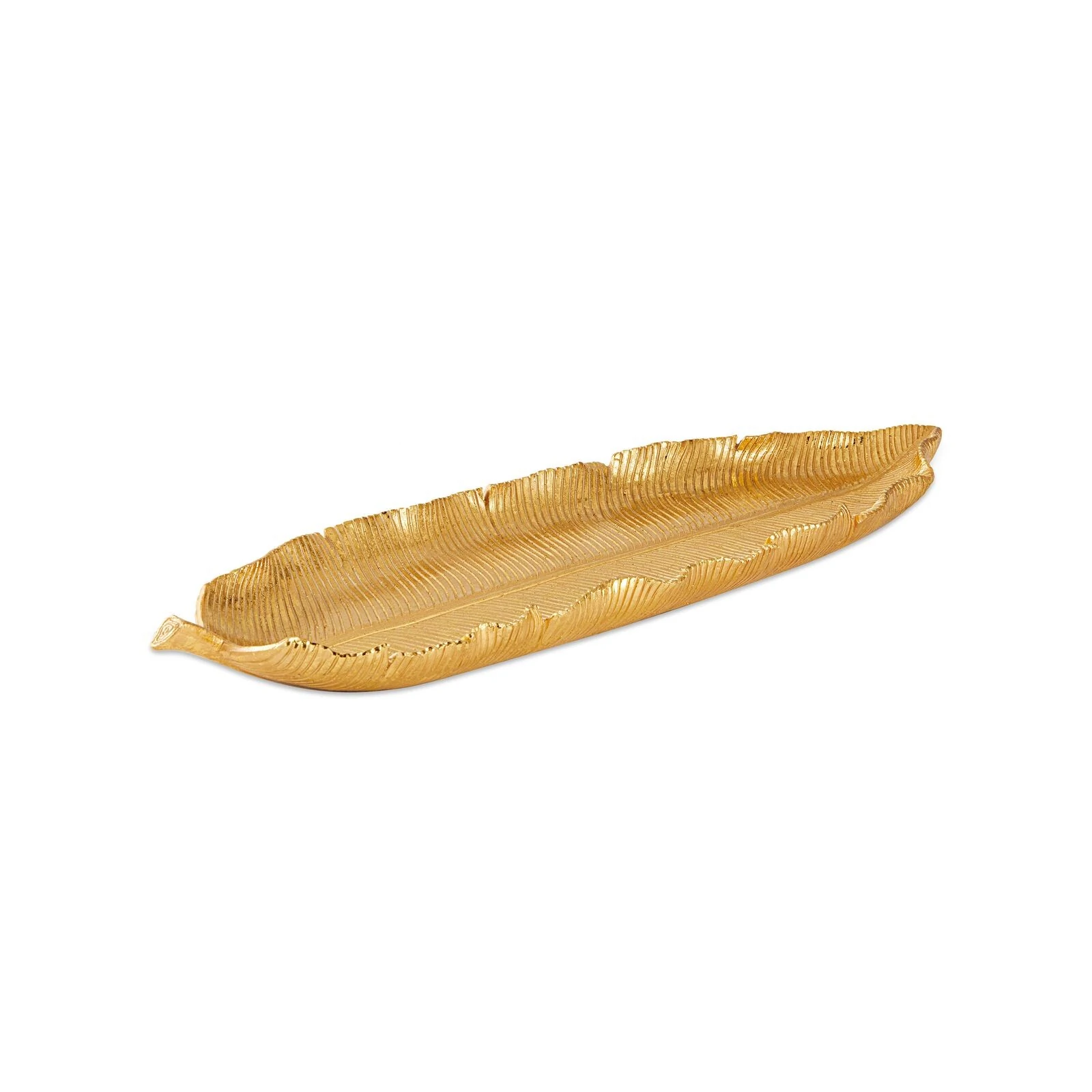 Centro de mesa em poliressina com formato de folha, que une elegância e leveza em uma peça sofisticada e atemporal. Seu acabamento refinado na cor dourada adiciona um toque de charme e requinte à decoração.