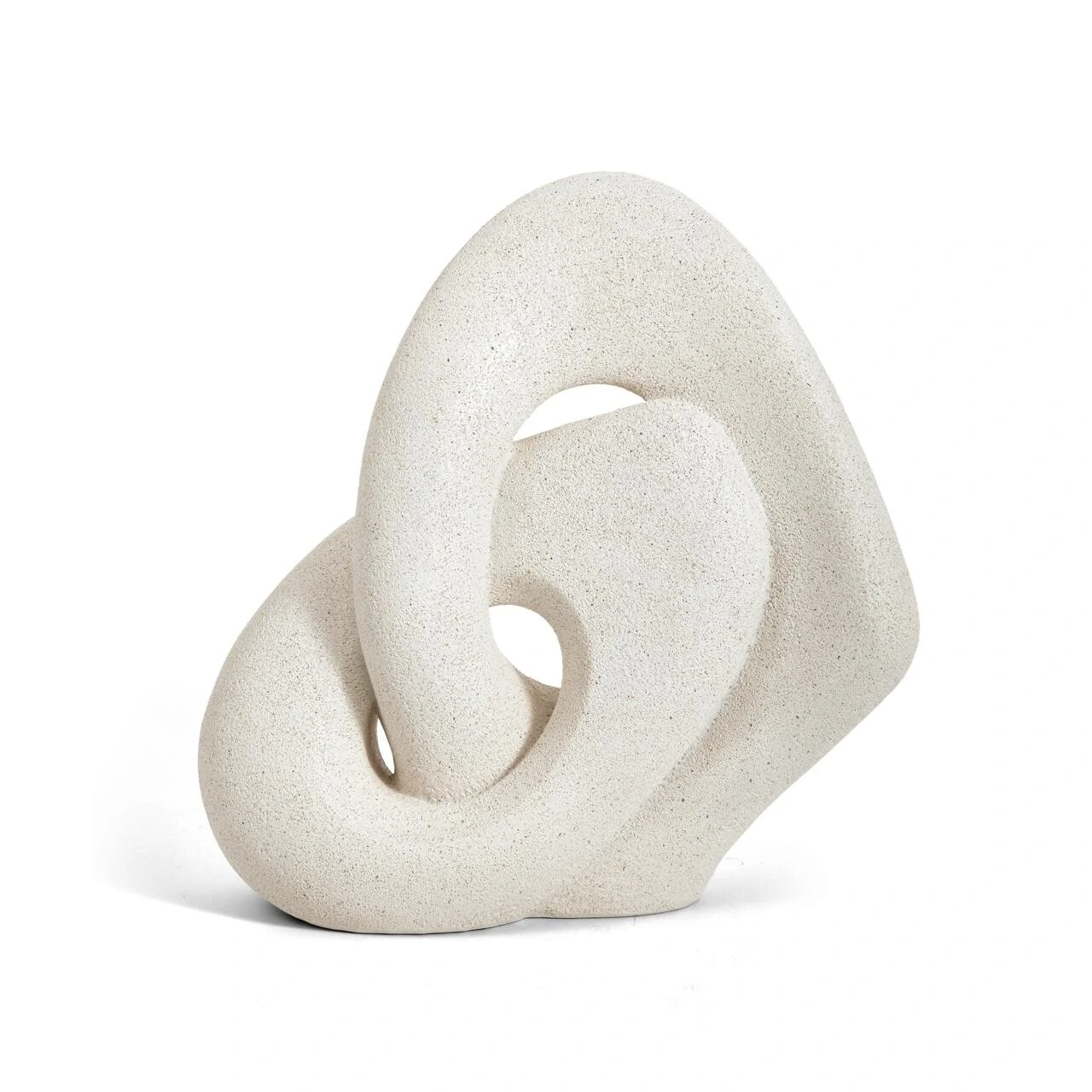 Escultura decorativa em poliressina, com design em formato orgânico, que traz um toque contemporâneo e sofisticado para compor a decoração de ambientes diversos.